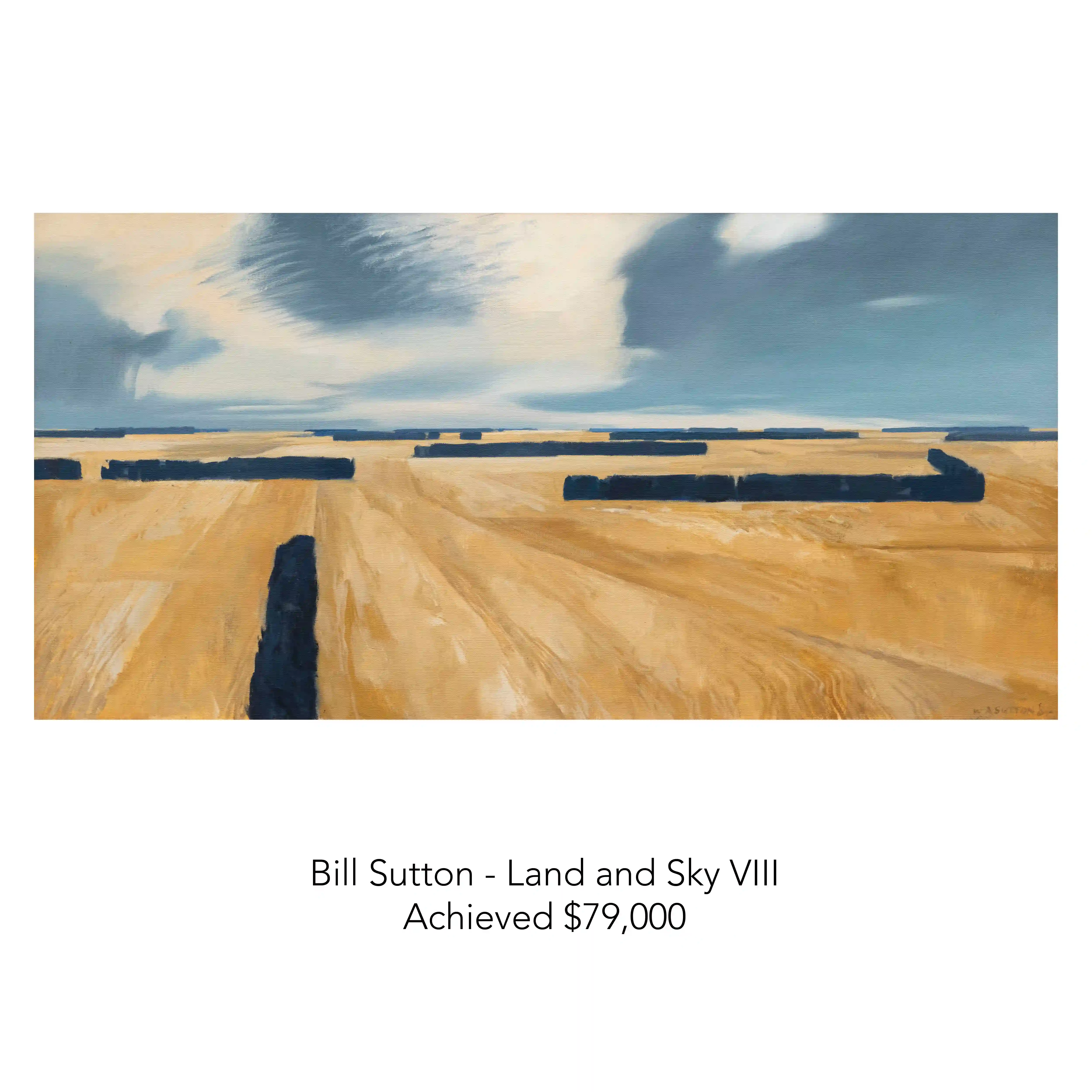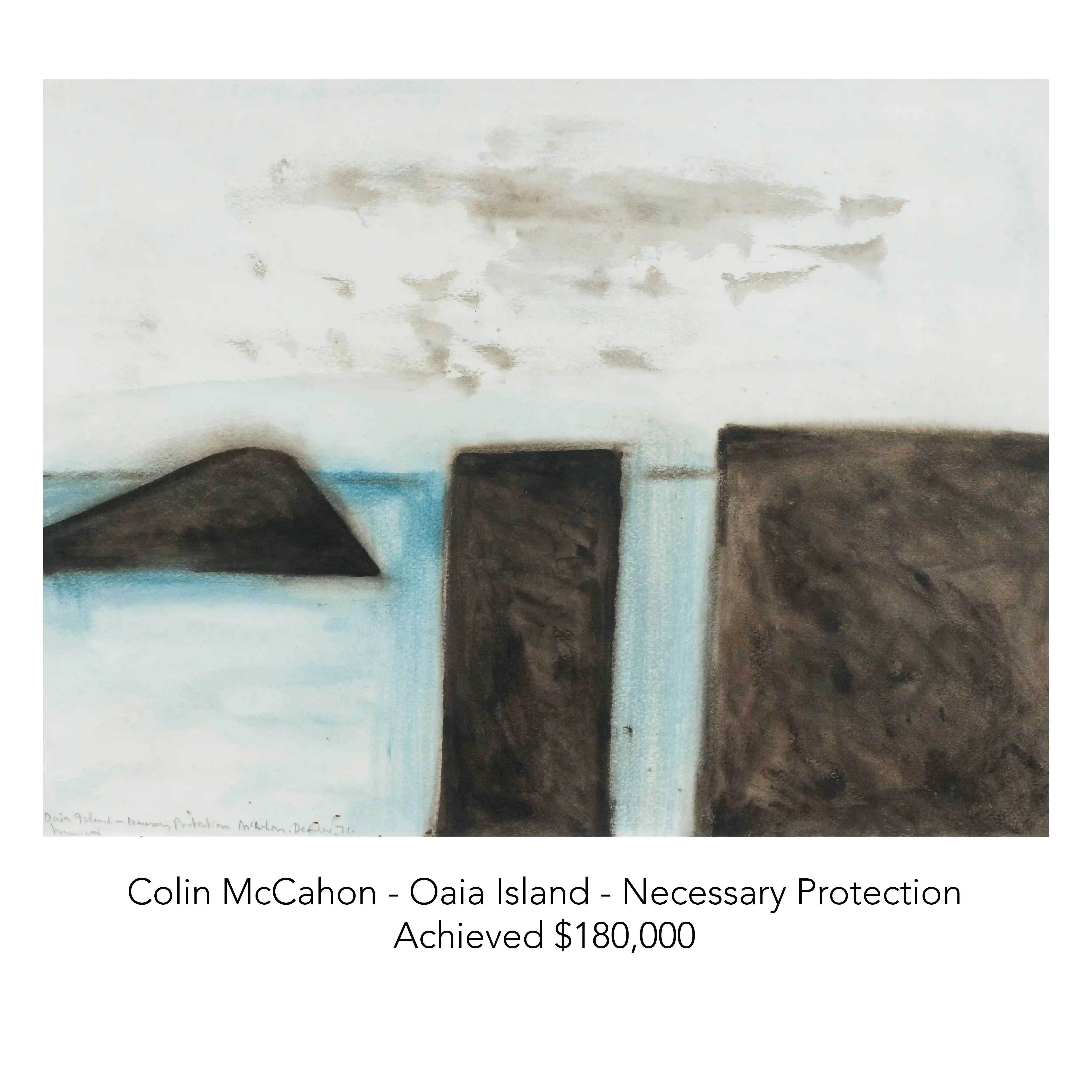 There were numerous highlights. The most significant result which was a record price for the artist Dorothy Kate Richmond for her work Outside the Pā, almost doubling the previous record. Other highlights include Colin McCahon's Oaia Island Necessary Protection which sold for $182,000 including premium and Bill Sutton's Land and Sky VIII achieved $79,000 including premium.